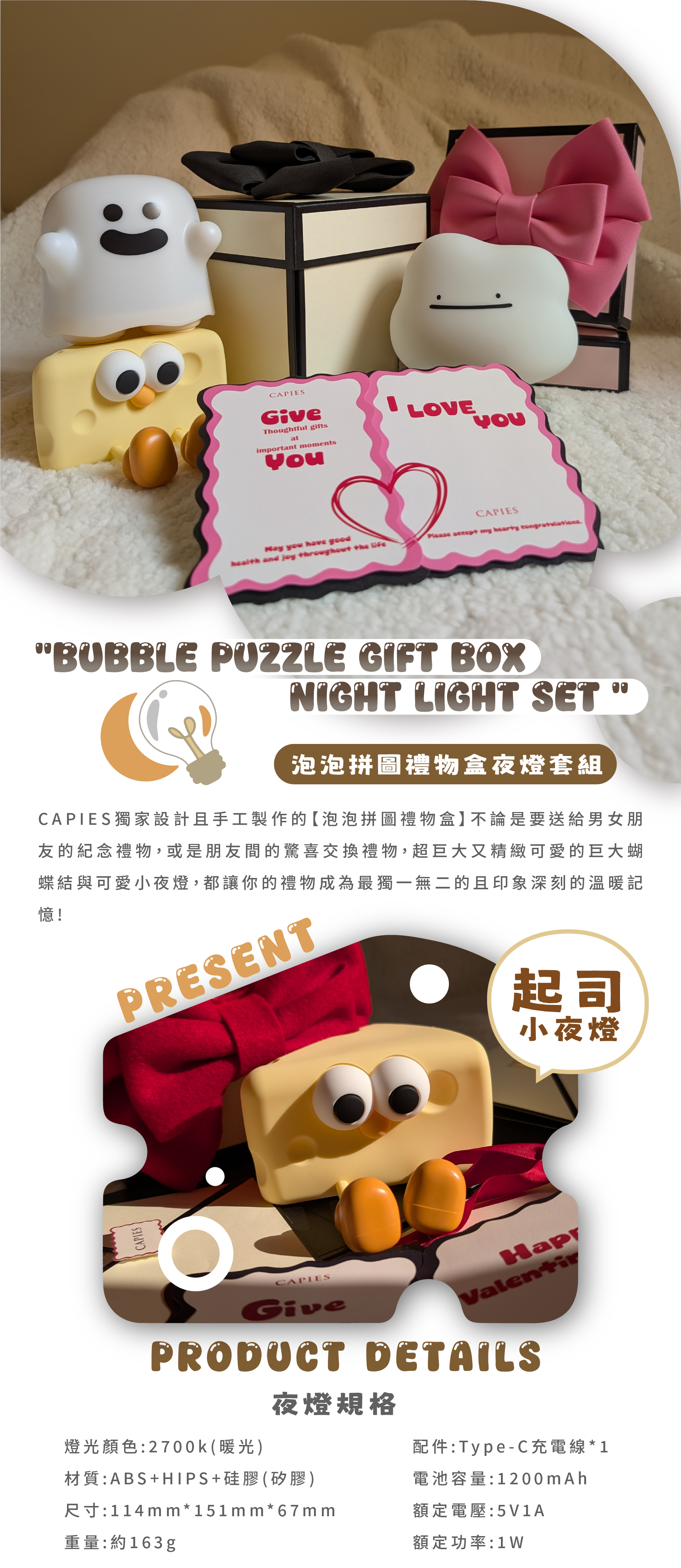 【泡泡拼圖禮物盒】起司夜燈套組