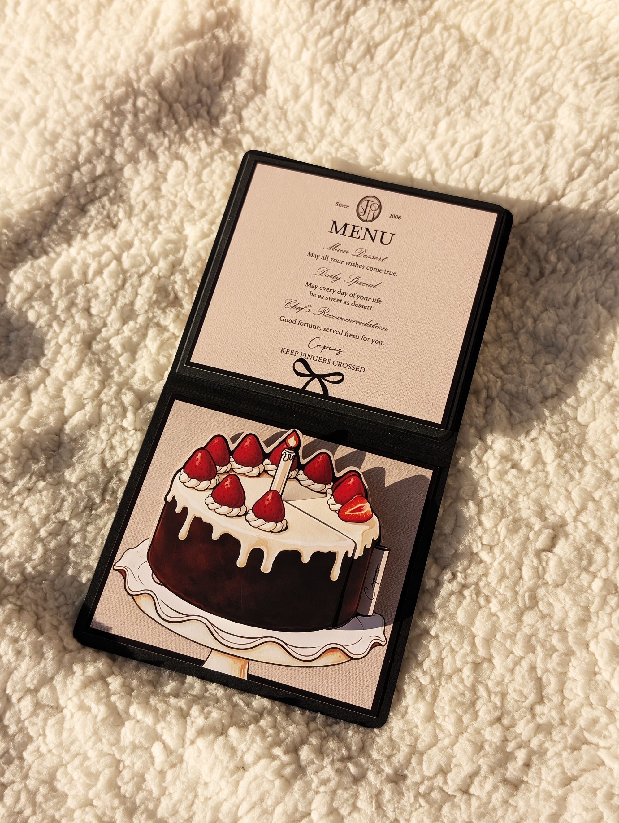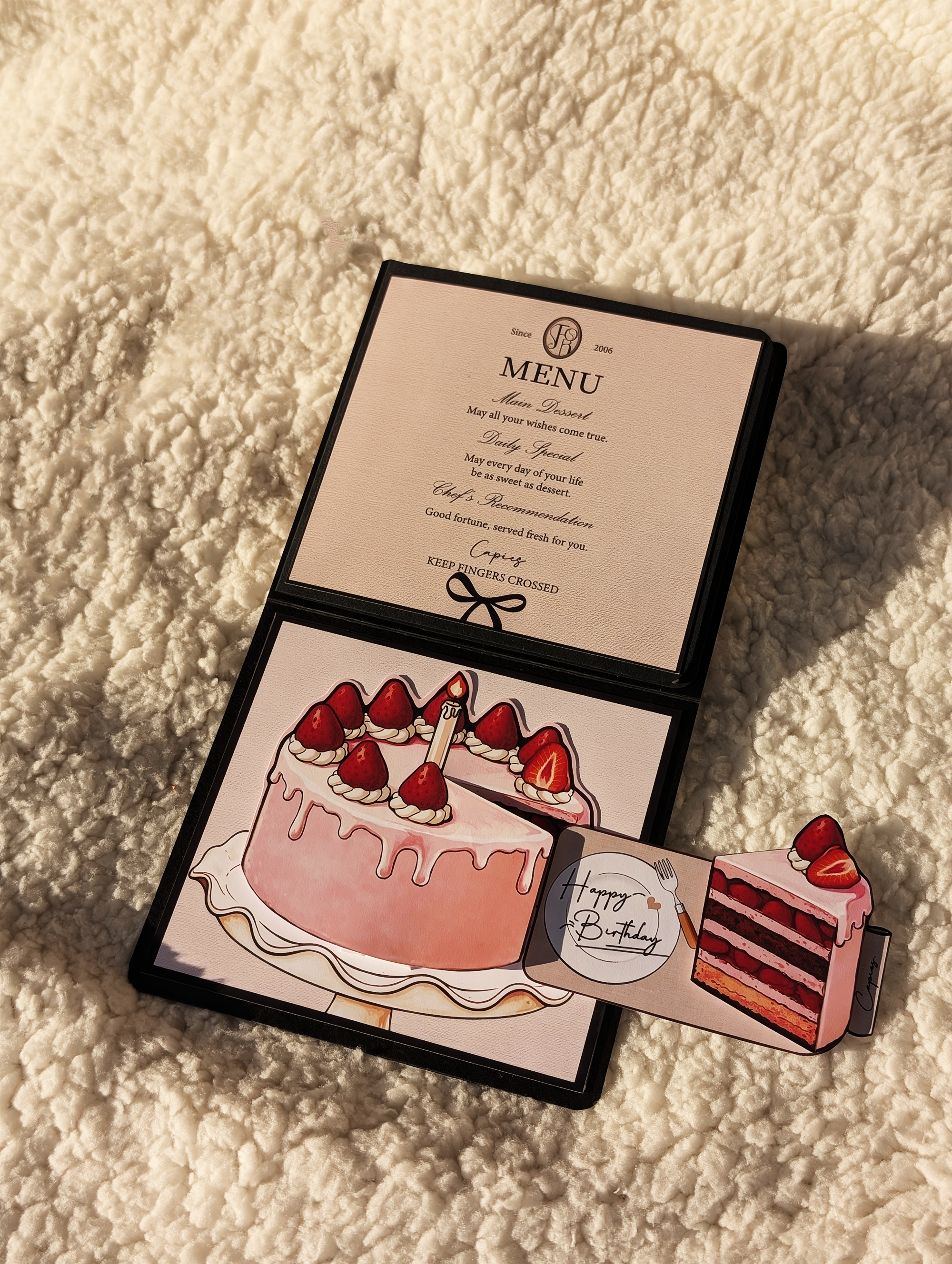 🍰 五種蛋糕口味可選 📸 翻翻照片機關 (免費代洗2張直式照片) ✍️ 手寫留言區